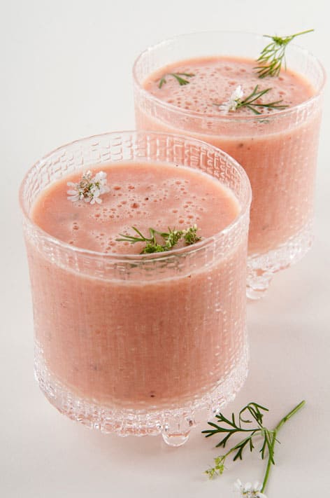 - Alle Zutaten bis auf die Minze mischen. Alles in einem Mixer oder mit einem Stabmixer fein pürieren.