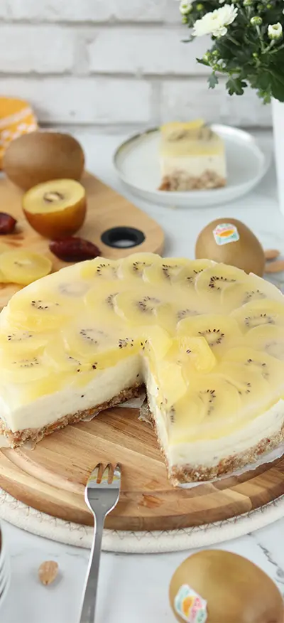 - Den Tortenguss nach Packungsanleitung zubereiten, auf die geschnittenen SunGold™ Kiwis geben und die Torte mindestens 3h, besser über Nacht, kaltstellen.