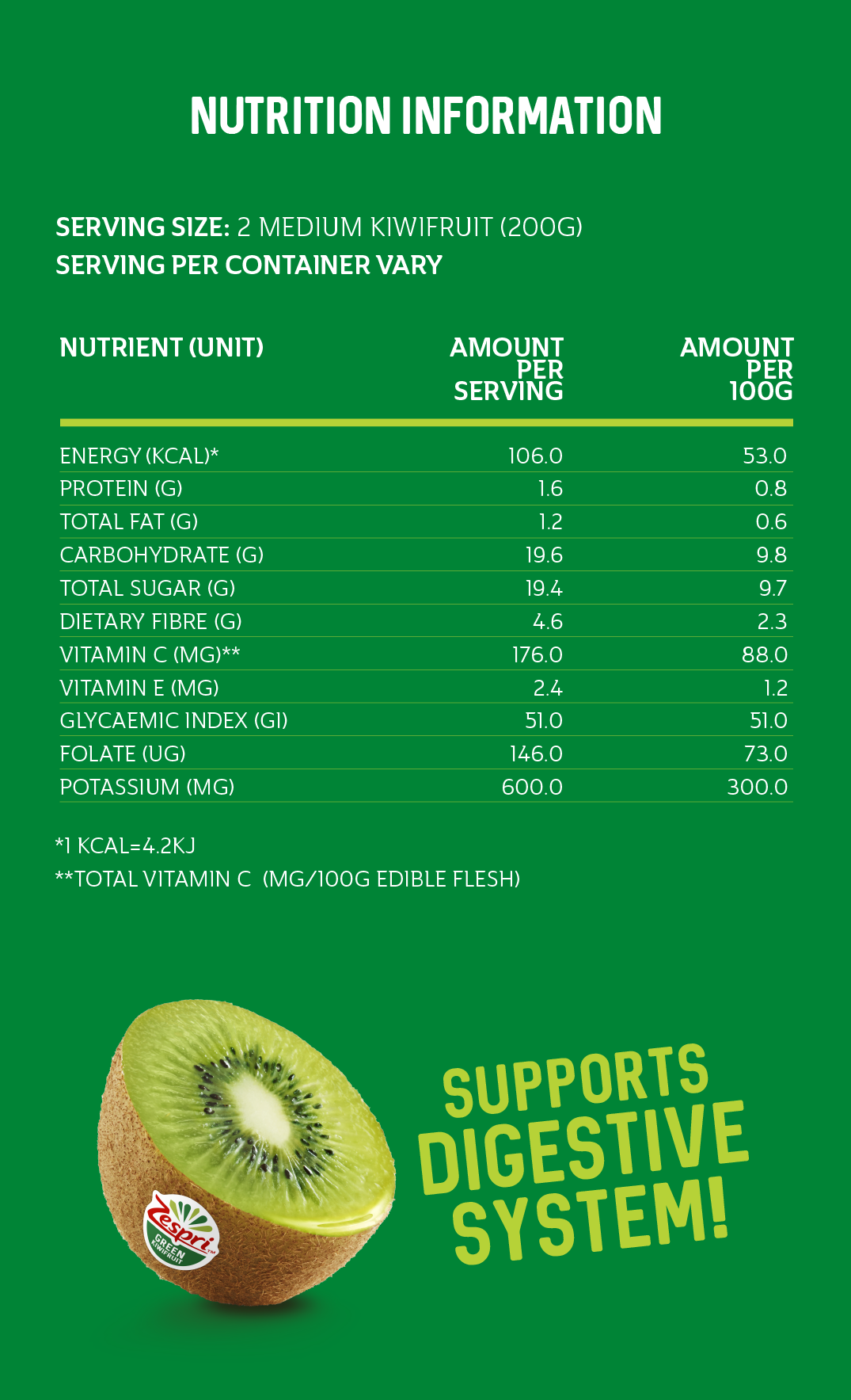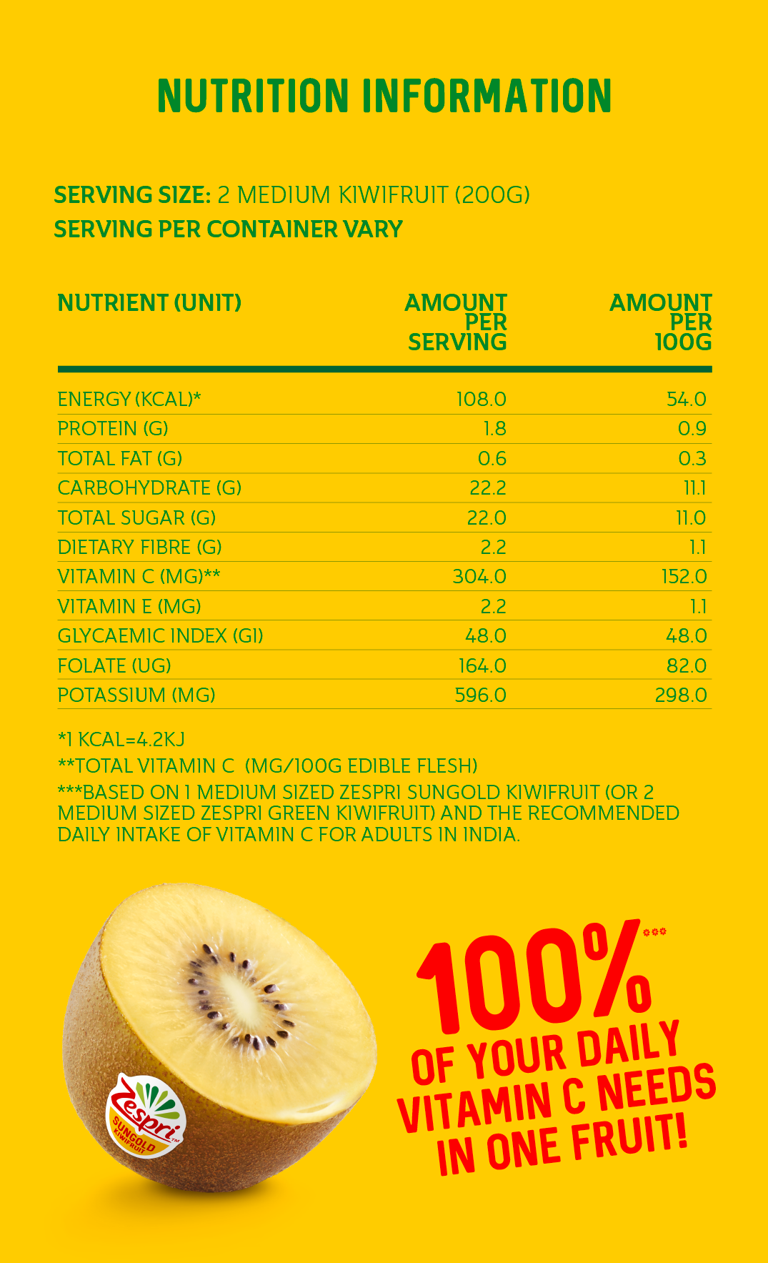 *Based on 1 medium sized kiwifruit and the required Vitamin C Intake for adult in UAE.