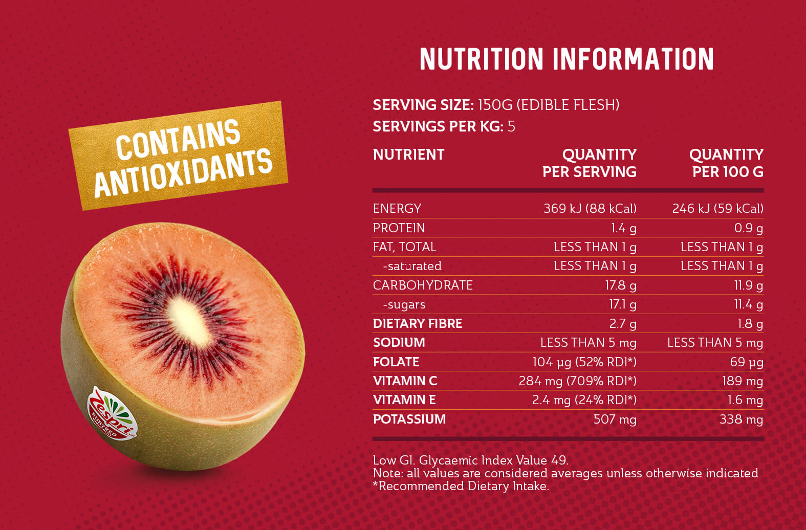 With its vibrant red flesh and tempting berry sweet flavours, Zespri RubyRed™ Kiwifruit contains antioxidants and is the irresistible treat that loves you back!