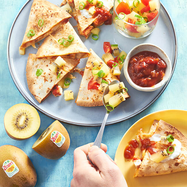 Chicken, Cheese and Zespri™ SunGold™ Kiwifruit quesadillas
