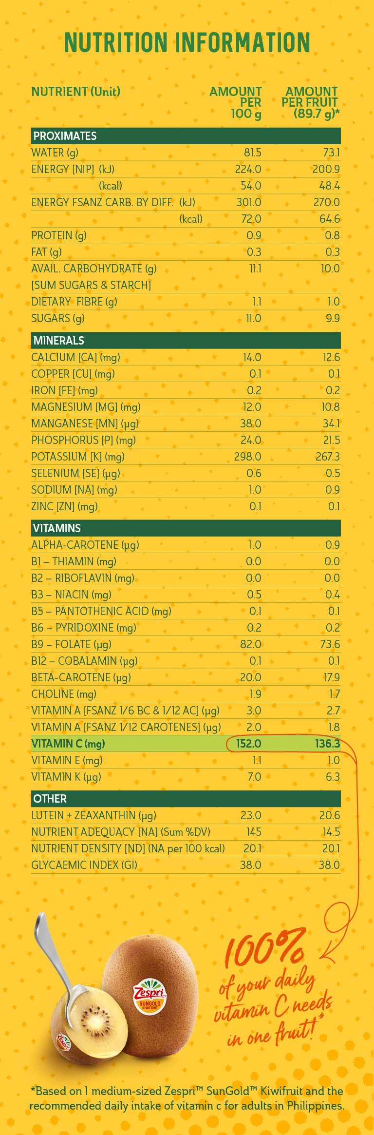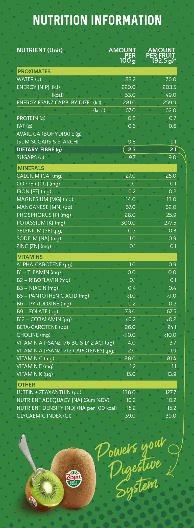 *Based on 1 medium sized kiwifruit and the