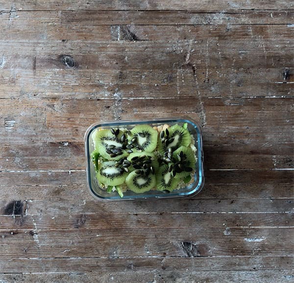 - Finally, peel and chop the kiwifruit, and place on top with the pumpkin seeds.