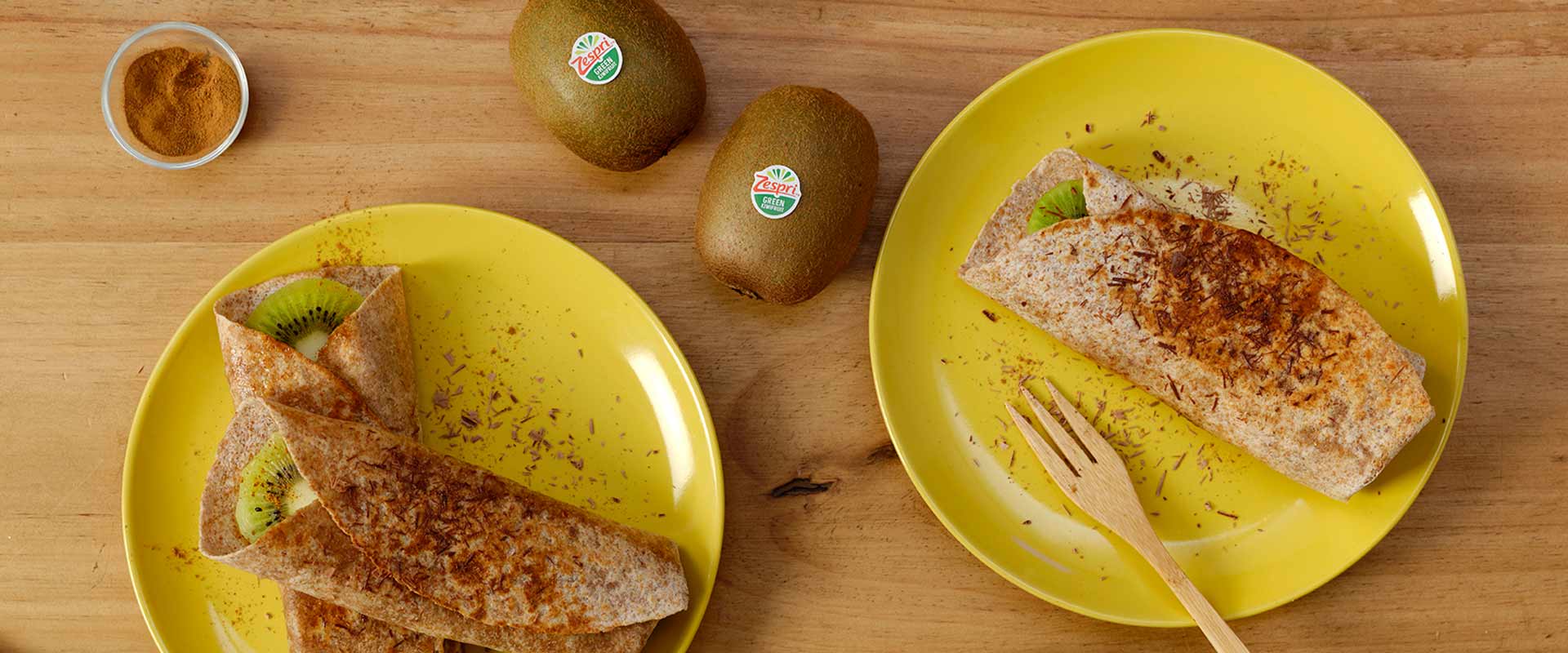 - Peel and slice the kiwifruit and banana. Spread the fruit over the tortillas and sprinkle with the cinnamon. Carefully roll them up to make the burrito.