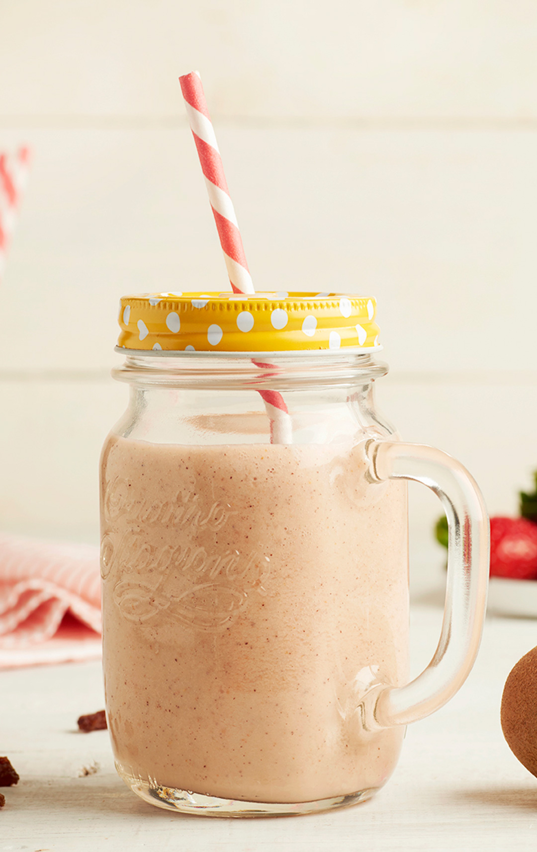 - Put the kiwifruit, strawberries, almond milk and raisins in the blender. Blend until smooth and a pouring consistency. Store in the fridge in a glass container and it’s ready to go!
