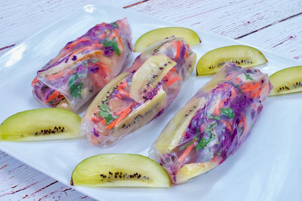 Note: Buy pre-shredded cabbage and carrots to make this even easier to prepare. Option to use whole wheat wrap instead of rice paper.