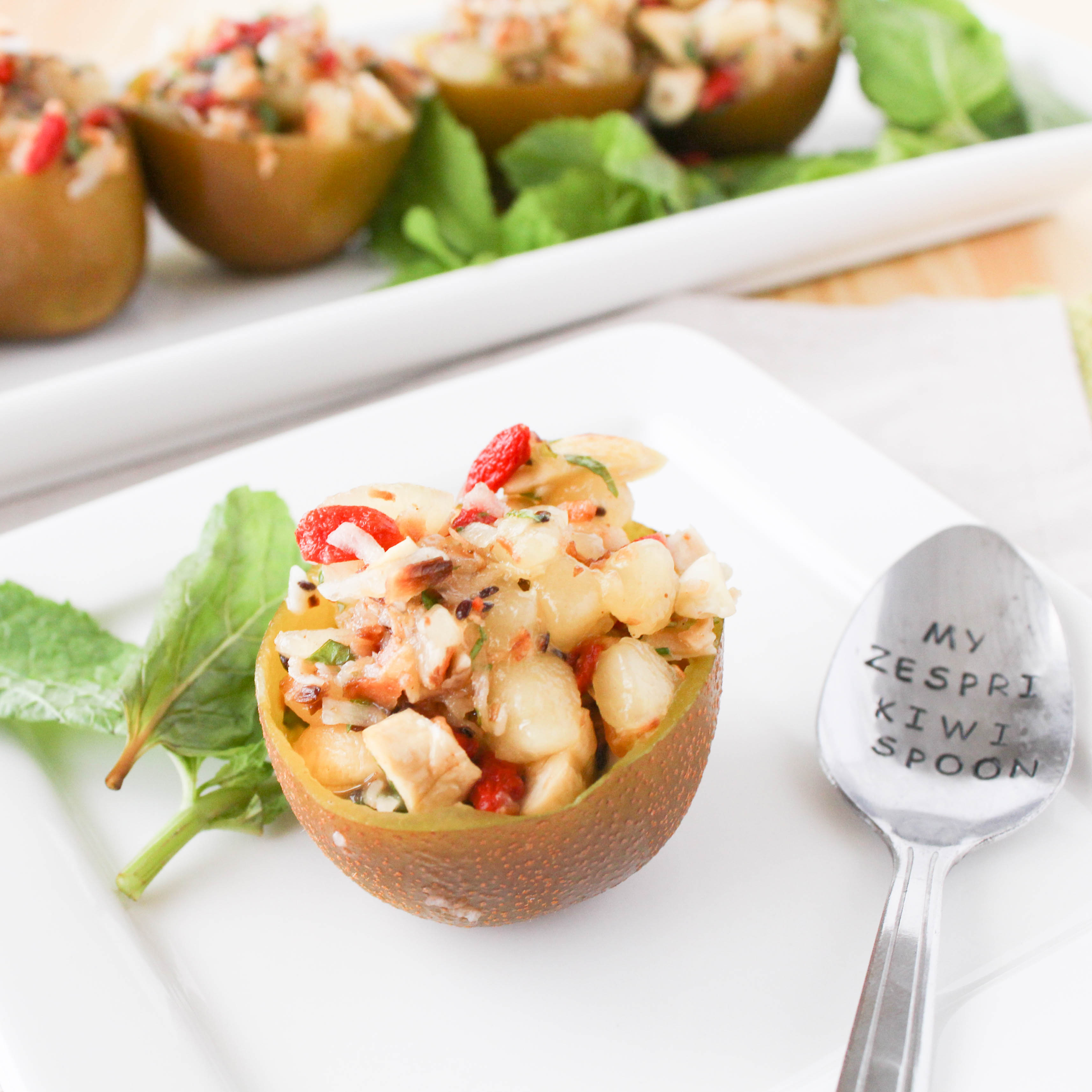 - Spoon mixture back into Zespri™ kiwifruit skins and drizzle with honey before serving. Enjoy with a spoon right out of the Zespri™ kiwifruit!