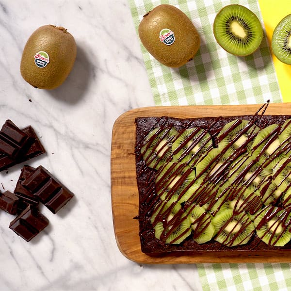 Brownie ligero cubierto con rodajas de kiwi Zespri Green