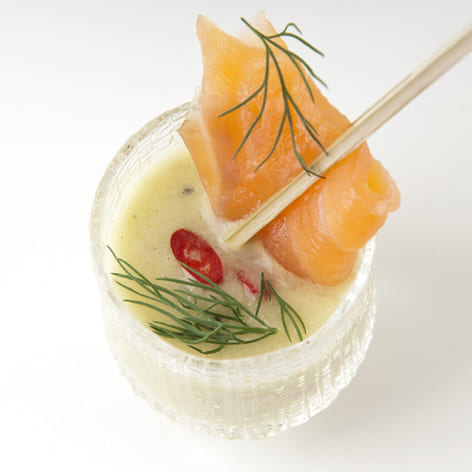Gazpacho de kiwi Zespri Green con eneldo y salmón