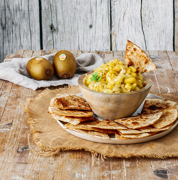 Salsa de kiwi Zespri SunGold y mango con chips de canela