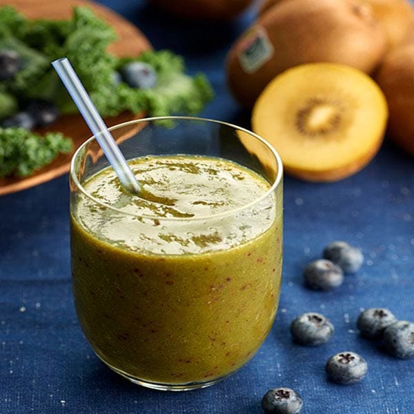 Smoothie de kiwi Zespri, kale, arándanos y mango