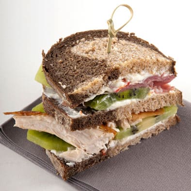- Tartinez-en quatre avec du kiwi Zespri Green et du poulet et les quatre autres avec du kiwi et du jambon.