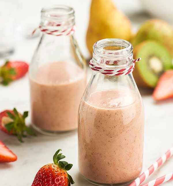 Smoothie au yaourt, kiwi Zespri Green, poires, fraises et noix