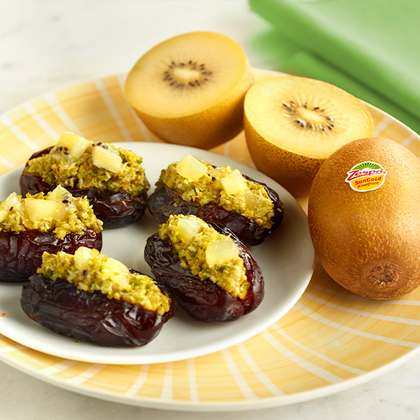 Dattes fourrées à la noix de coco, kiwi et pistache