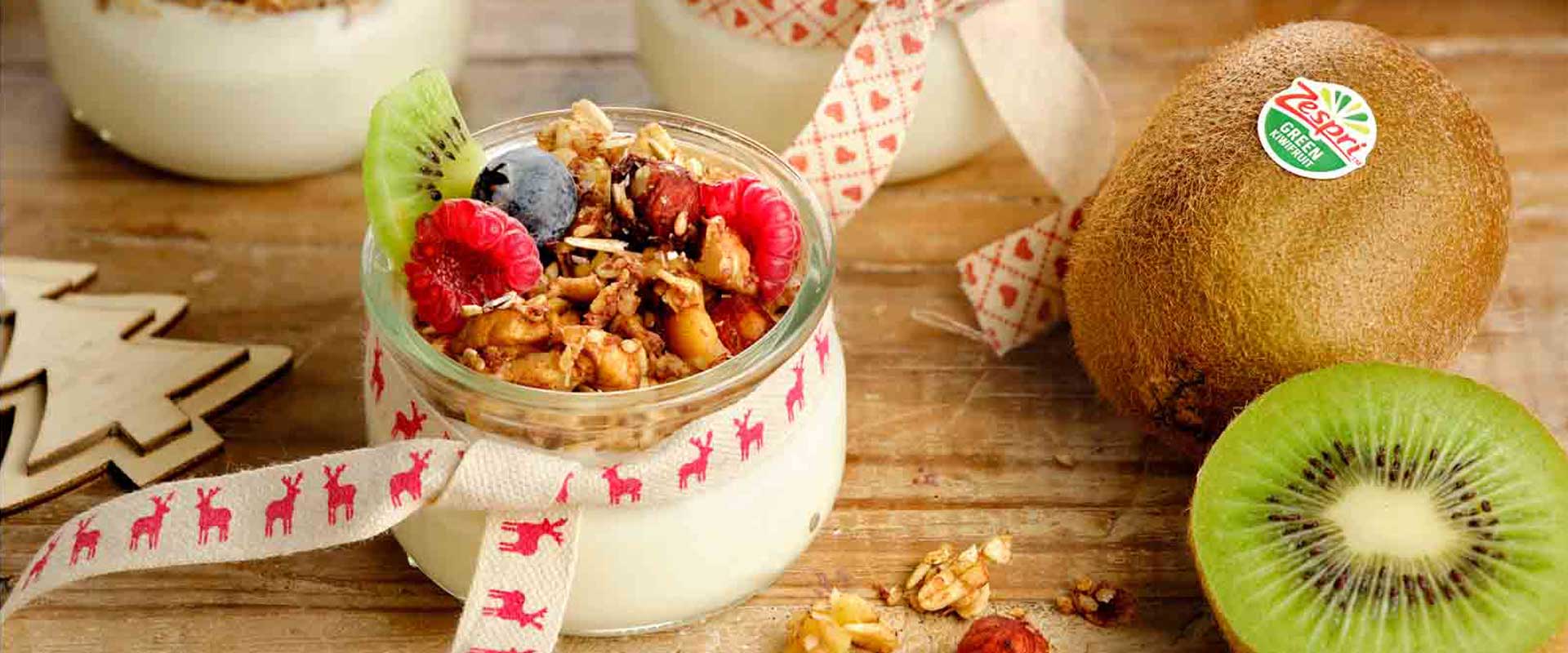 Feestelijke granolapotten met yoghurt en Zespri™ Green kiwi