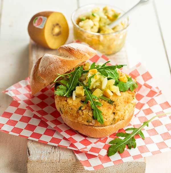 Hamburger van kikkererwten en Zespri SunGold kiwi