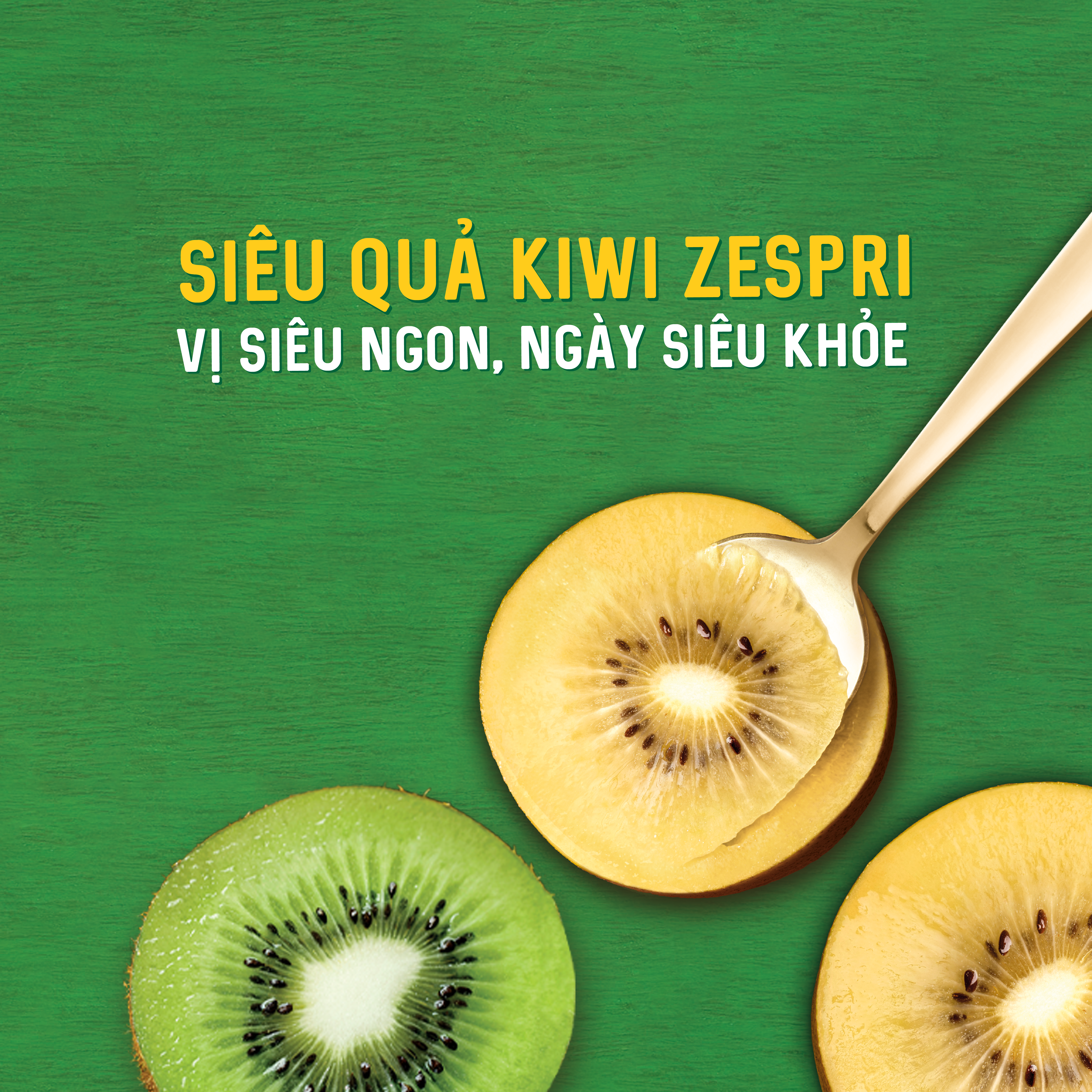 Cảm nhận vị ngon bùng nổ vị giác từ Kiwi Vàng mọng nước và vị ngọt thanh mát, sảng khoái từ Kiwi Xanh.